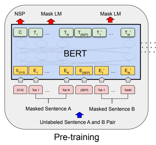 BERT의 pre-train은 Masked LM, NSP 두가지의 method를 제시한다.