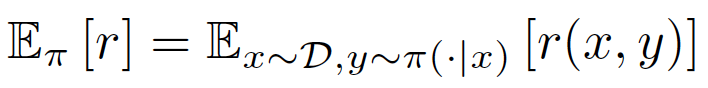 RL fine-tuning을 진행하는 모델의 정책을 $\pi$로 나타내며, 초기 정책의 세팅은 pre-trained $p$가 된다. Task가 reward function $r : X \times Y \to \mathbb{R}$에 의해 정의되었을 때에는, 보상의 기대값을 최대화할 수 있게 다음과 같이 최적화를 할 수 있다.