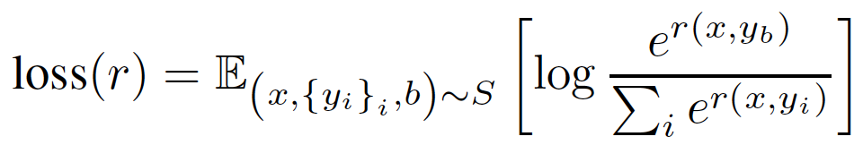 하지만 본 논문은 사람이 human feedback으로 task를 정의하여 모델이 학습하는 것을 목표로 하기 때문에 인간과의 질의응답을 통해 reward function을 학습시킨다. 인간은 주어진 4개의 출력 $(y_0, y_1, y_2, y_3)$ 중에 어떤 보기가 입력 $x$에 대해 가장 나은 답변인지를 $b \in \{0, 1, 2, 3\}$로 나타낸다. 진행된 질의응답으로 생성된 데이터셋 $S$는 $(x, y_0, y_1, y_2, y_3, b)$로 구성된 튜플 형태로 생성되며, 수집된 샘플에 따라 다음 loss로 reward model $r : X \times Y \to \mathbb{R}$를 학습한다: