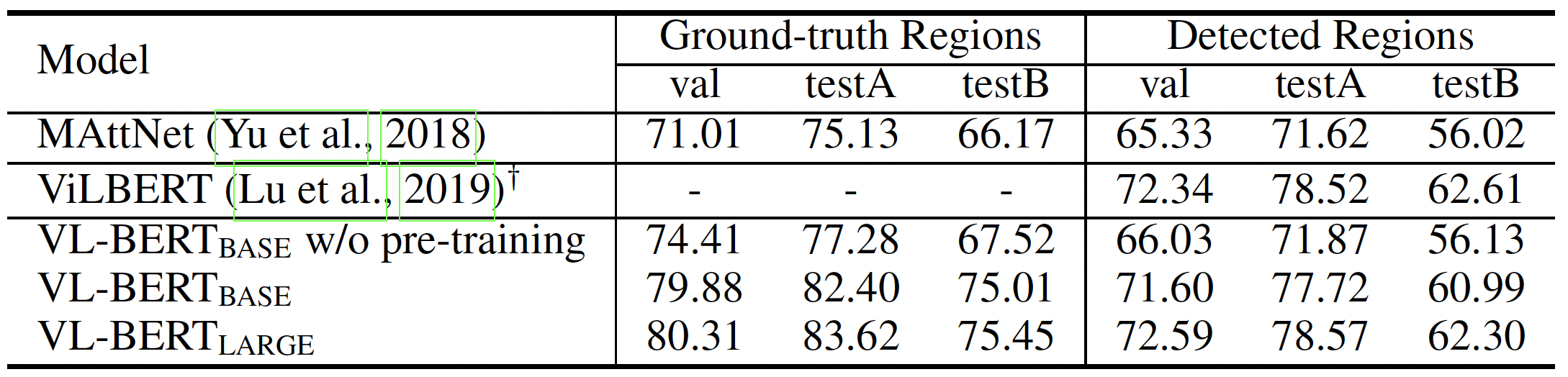Referring expression comprehension task는 주어진 표현에 알맞는 이미지 영역을 고르는 문제로, 해당 task에서는 ViLBERT와 비슷한 성능을 보여주었다.