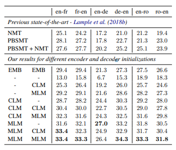 1. Cross-lingual representations 학습을 위한 새로운 unsupervised 기법 CLM, MLM을 제시한다.
