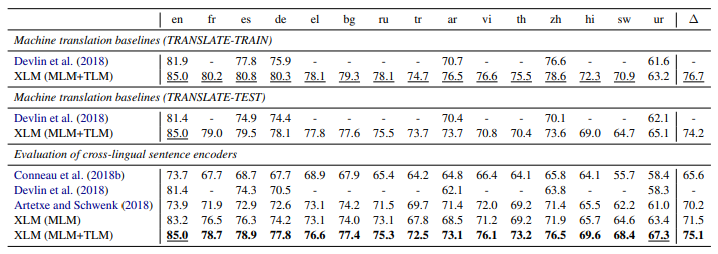 XLM은 unsupervised objective인 CLM과 XLM을 제시하고, parallel data가 있을 경우 보다 효율적인 학습이 가능하게 하는 TLM을 제시한다.