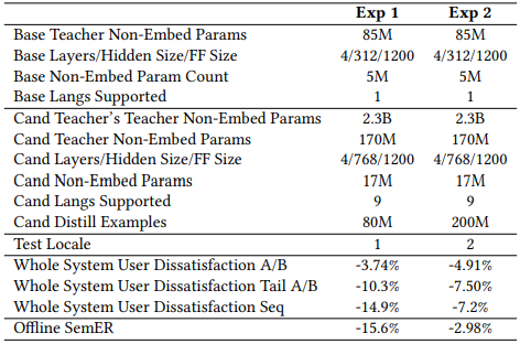 위의 표에 따라, AlexaTM의 학습 process을 통해 학습된 모델이 유저 불만도를 3.74~4.91% 감소시키는 것이 확인되었으며 tail utterance 불만도는 A/B 테스트에서 무려 7.5~10.3% 감소시켰다. Sequential result는 최대 14.9%가 개선되었지만 시간이 지남에 따라 플랫폼의 변경 사항에 따라 신뢰성이 떨어질 수 있다. Offline SemER은 2.98~15.6%가 개선된다.
